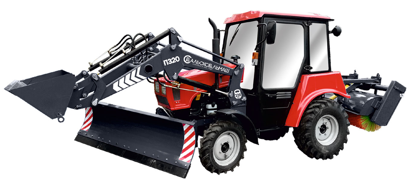 В настоящий момент погрузчик выпускается в комплекте с ковшом П320-1 вместимостью 0,15м3 – для работы с малосыпучими и сыпучими грузами удельным весом 10…15 кН/м3. Погрузчик П-320 имеет возможность навески совместно с отвалом коммунальным КО-320 и щетками МКЩ.